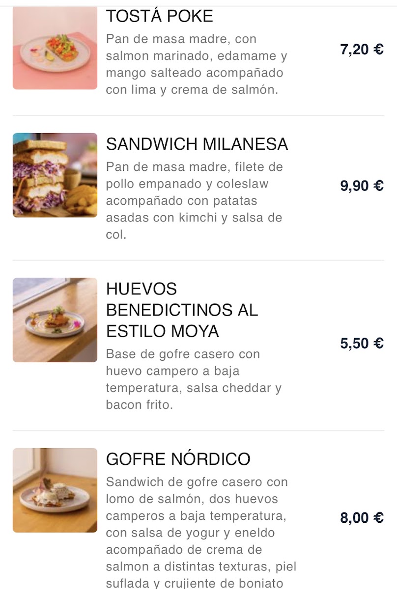 Welcome to Restaurante Moya Brunch, a hidden gem nestled in the heart of Sevilla. This trendy locale shines with its vibrant atmosphere and a menu that artfully balances classic brunch staples with creative flair. Expect to indulge in dishes like perfectly poached eggs, fluffy peach pancakes, and colorful avocado toast, all made with fresh ingredients. Each plate is a visual feast, ensuring that brunch is as delightful for the eyes as it is for the palate.